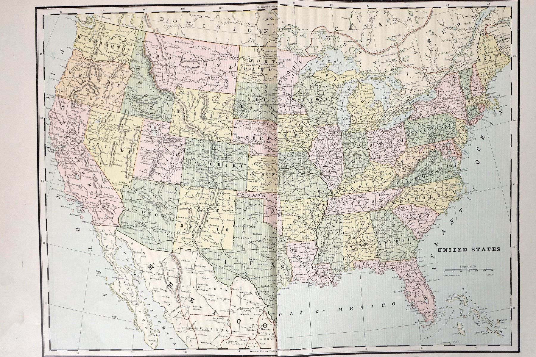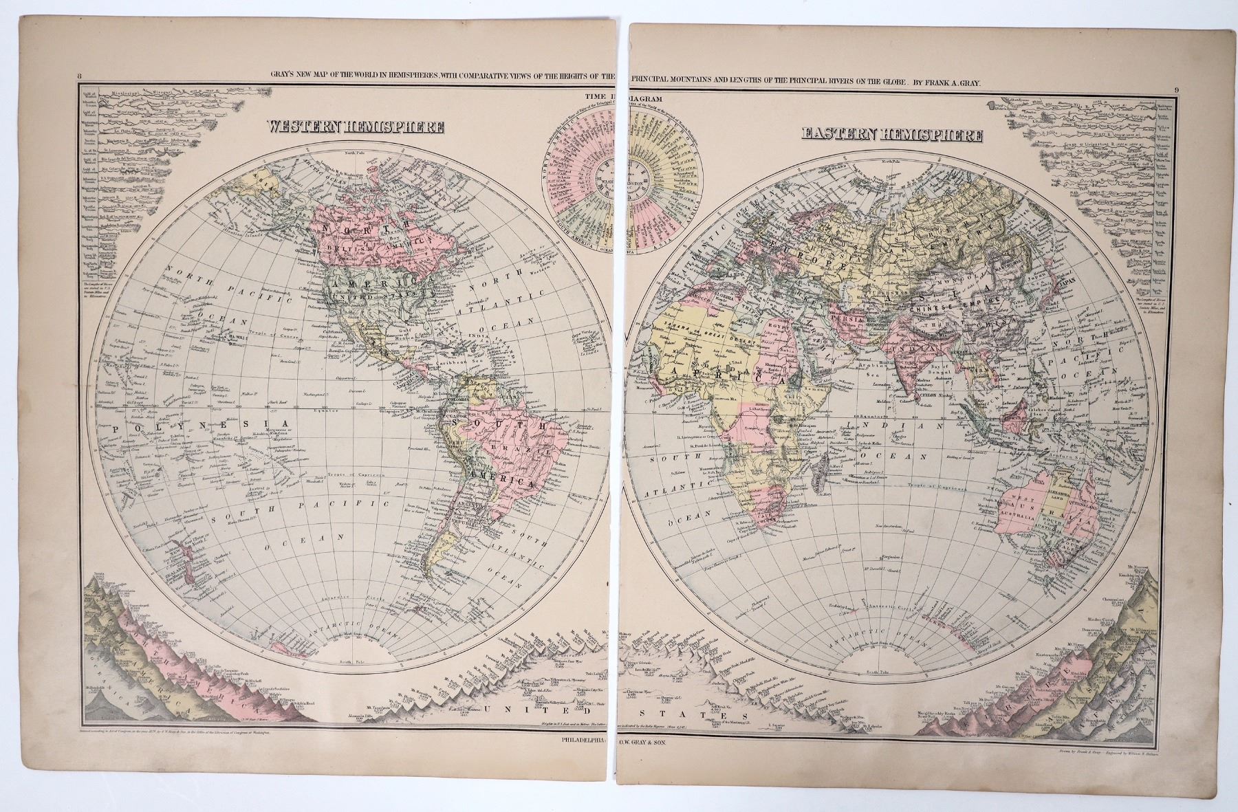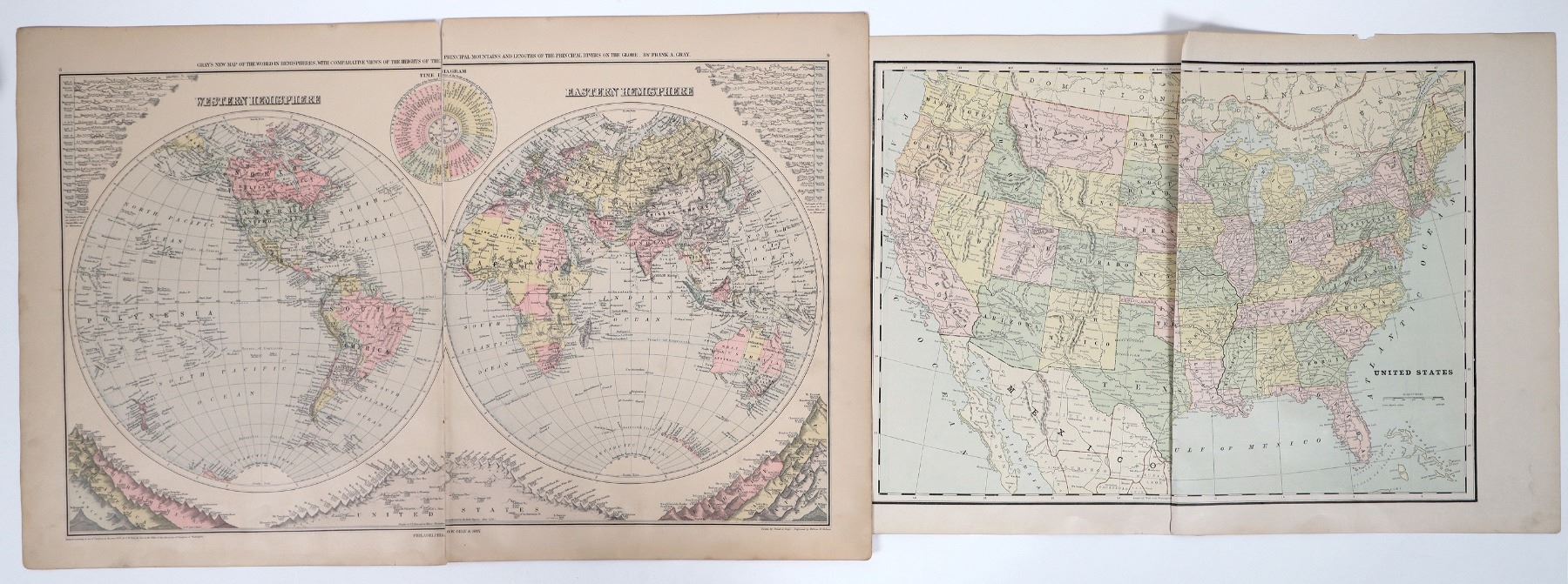 Two Maps. One The United States, One The Globe. By O.W. Gray & Son. Two Large Pages.