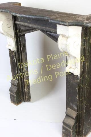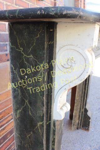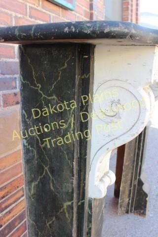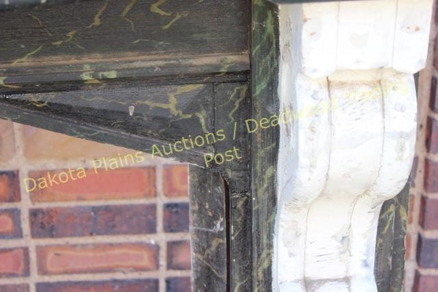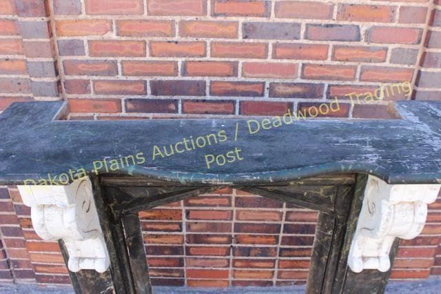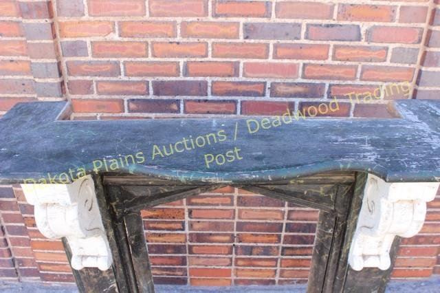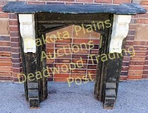 with original faux painted black marble finish and scrolled corbles intact. Outside 45" X 48", opening 20" X 23 1/2" X 35 1/2" tall. Nice early architectural elements easily adaptable to modern firebox. Est.