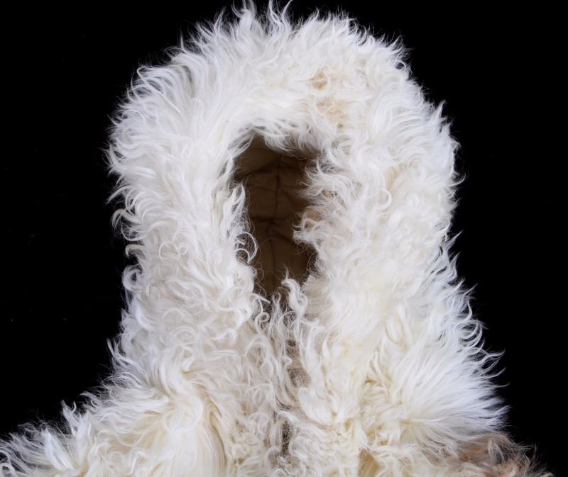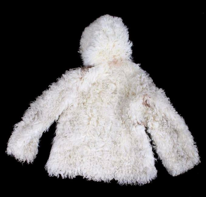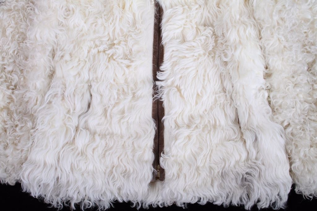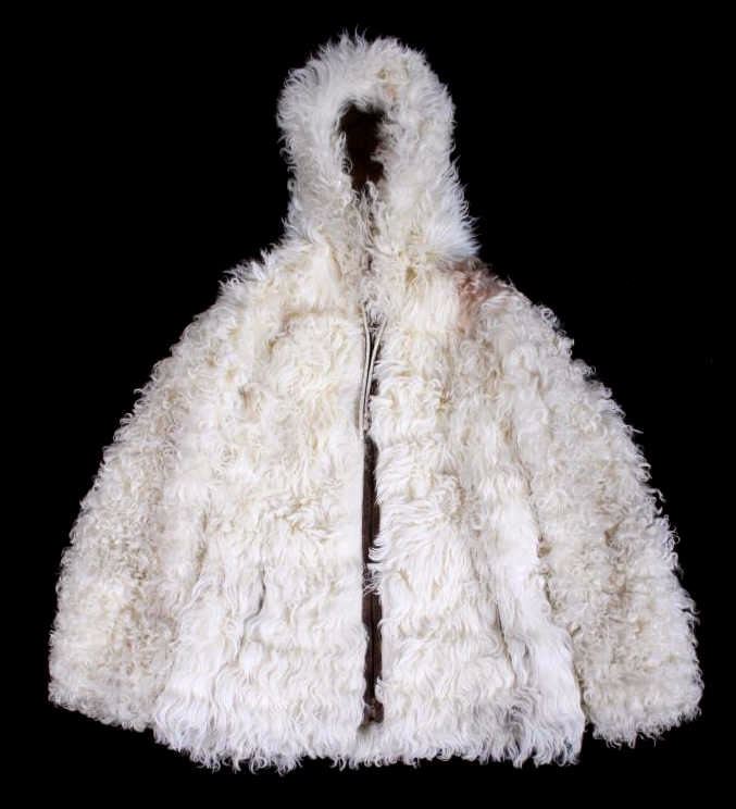 This is an early vintage Conklin Furs white Angora fur jacket with hood. The piece shows a rich great condition fur and clear name tag. The piece shows no visible flaws and appears to be a size M. Measures from top of hood to bottom edge 36.5"L.