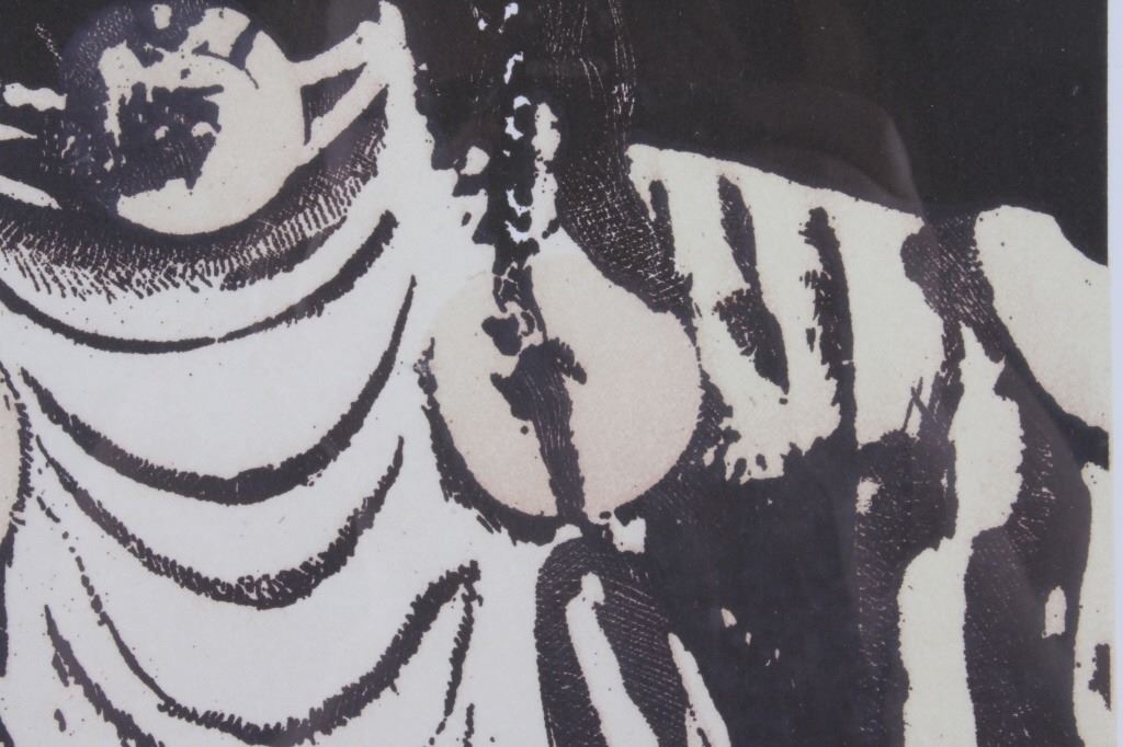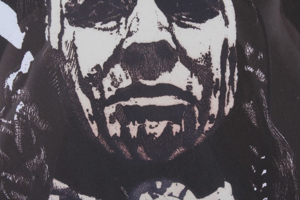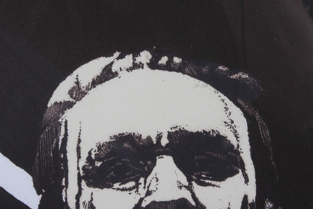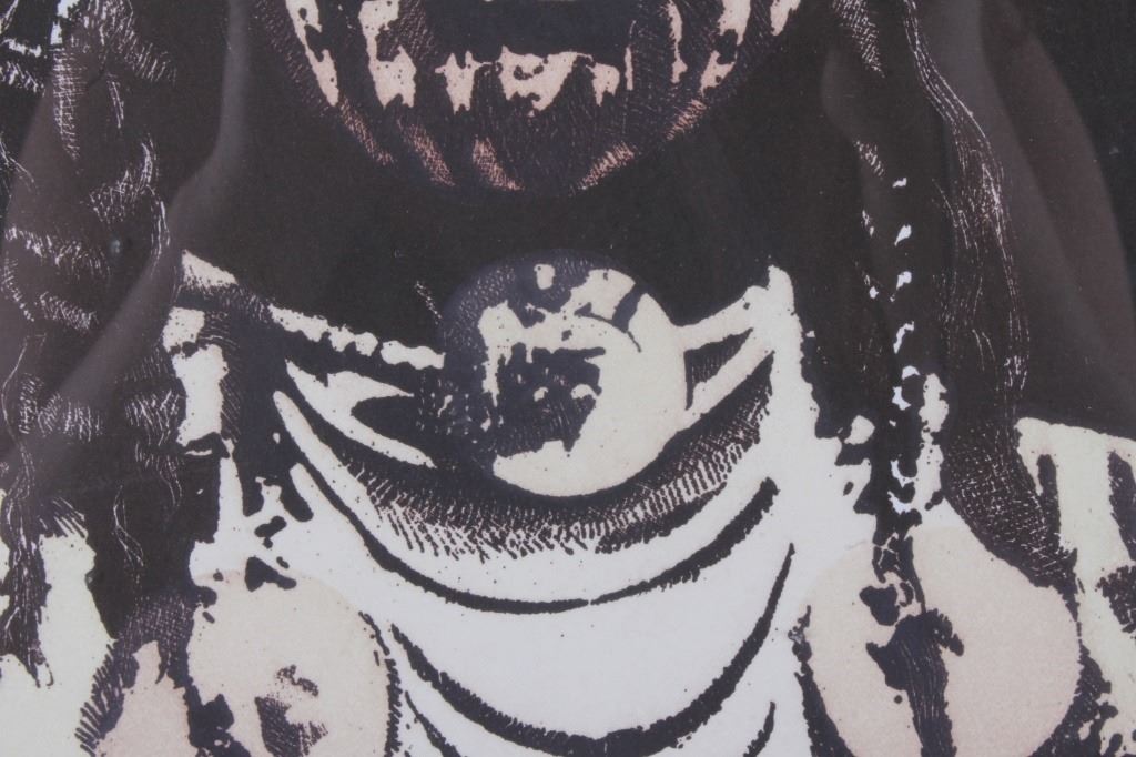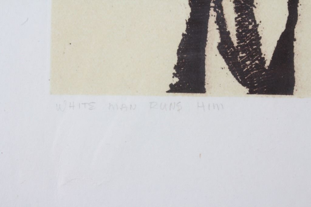 This lot includes an exceptional Early Wolf Robe Serigraph Portrait. Serigraphy, a medium that's been around for over one hundred years. Serigraphy is a fancy term for silkscreen printing. The word was coined early in the last century to distinguish the artistic use of the medium from its more common commercial purpose. Silkscreening, as we know it, however, dates only to the early years of the 20th century. This piece shows great detail of White Man Runs Him (Mahr-Itah-Thee-Dah-Ka-Roosh; 1858 – June 2, 1929) was a Crow scout serving with George Armstrong Custer's 1876 expedition against the Sioux and Northern Cheyenne that culminated in the Battle of the Little Bighorn. Born in Lodge Grass, Montana, White Man Runs Him "enlisted on April 10, 1876 at the Crow Agency, Montana Territory, for six months in the 7th United States Infantry."[1] On June 21, 1876, he was transferred to Custer's Seventh U.S. Cavalry as part of a contingent of six Crow warrior/scouts, including Goes Ahead, Curly, Hairy Moccasin, White Swan, and Half Yellow Face, the leader of the scouts. Provenance: From the renowned Sundog Fine Art Bozeman, Montana collection and collected by Bruce VanLandingham. Bruce VanLandingham was a pillar in the American Indian collecting community and a respected expert. Along with being an avid collector Bruce also was the sole owner of Sundog Fine Art Gallery in Bozeman which was both part museum and gallery. This excellent piece shows wonderful quality and detail. The frame measures 25 1/2" by 33 1/2". The artwork shows 12 1/4" by 16".