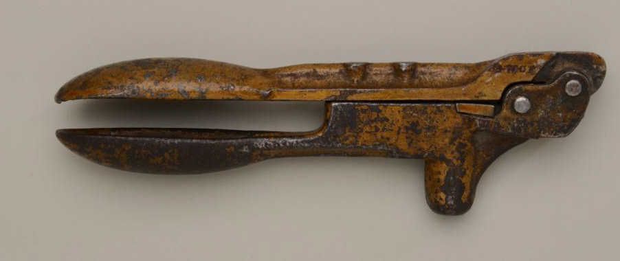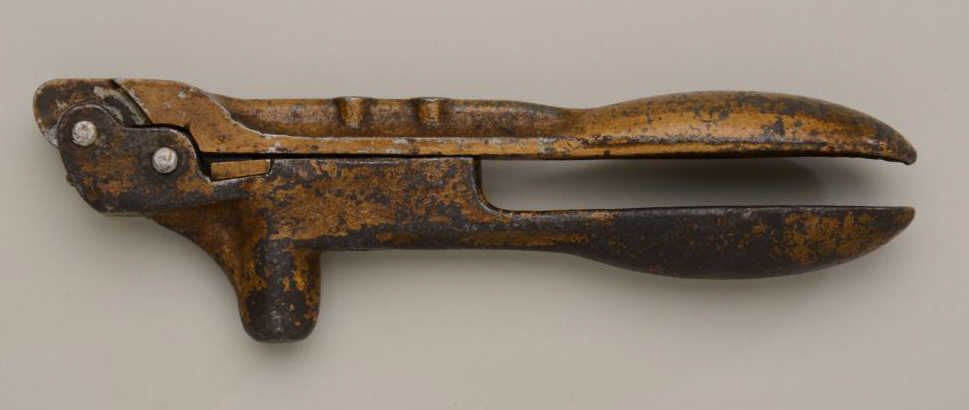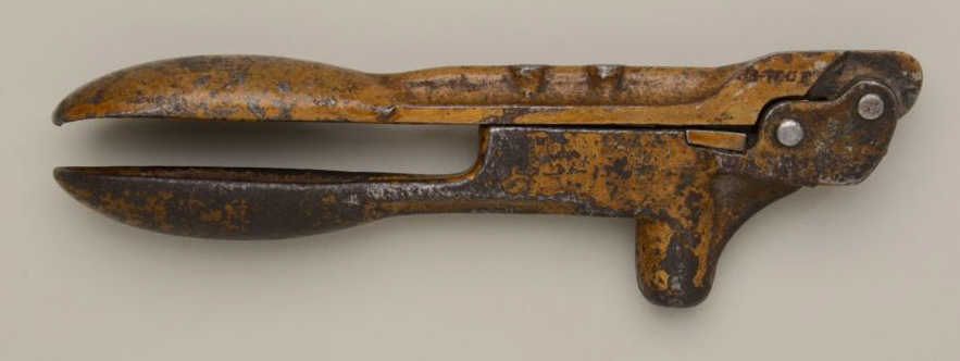 Early Winchester loading tool, .38-40 cal., gold painted finish, spoon shaped grips, approx. 30-50% enameled finish remains, some darkening and pitting where finish is lost. A rare early Winchester accessory. Est.:$300-$600