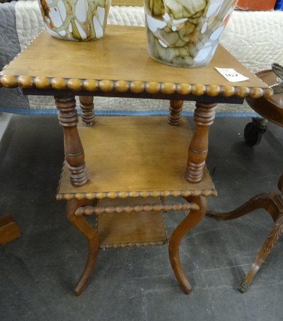 Early Wood 3 Tier Table w/Braided Rope Trim