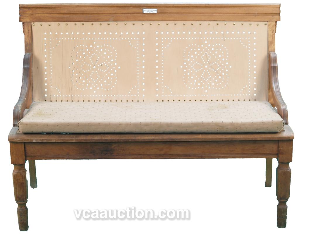 Early Wood Train Station Bench c1911 MFG by J.S. Ford, Johnson & Co. Chicago, ILL. from a Miami, AZ. train station which closed in 1953.