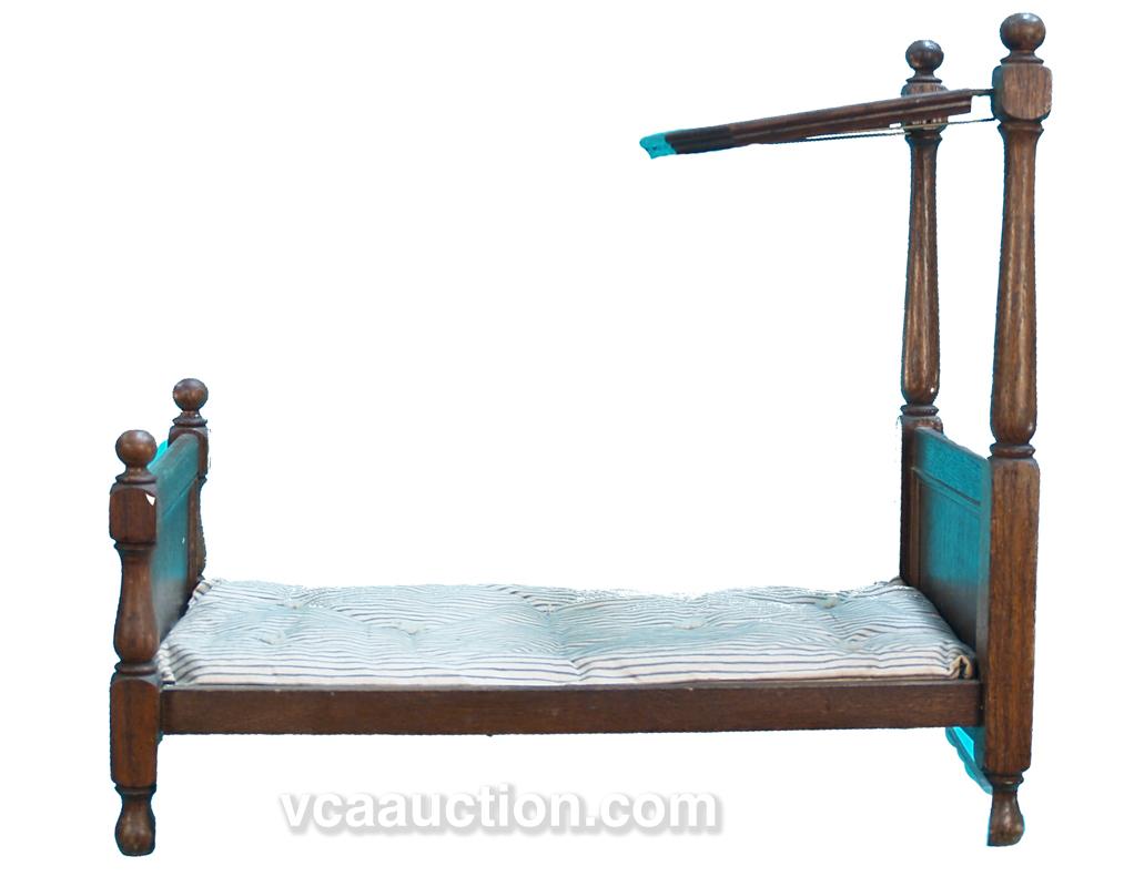 Early Wooden 4 Post Doll Bed w/ Rare Wooden Canopy, includes mattress, sold at the 1976 Pony Express Auction & Andy Griffith Collection