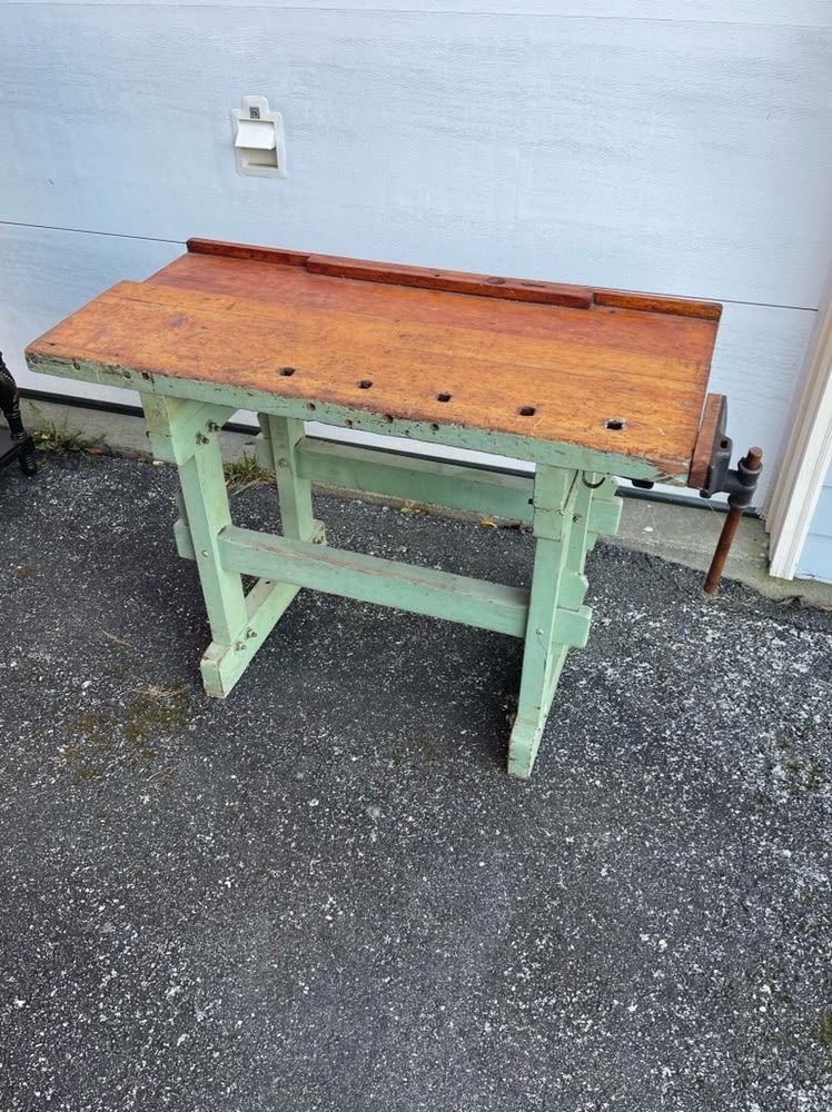Early Work Table with vice, nice green paint
