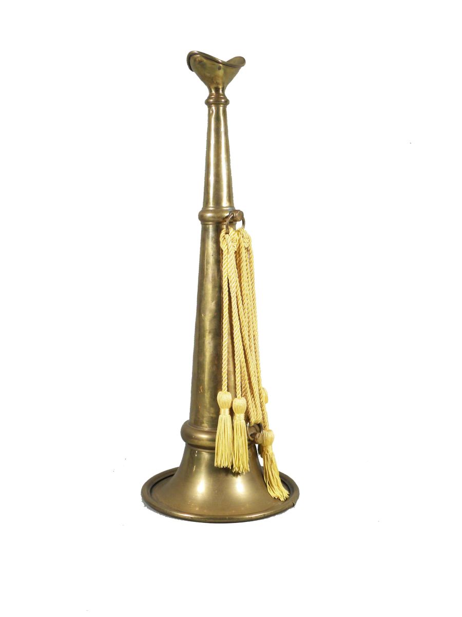 Early Working Fire Trumpet, brass. Complete with tassel cord. Very good original condition. 7 inch bell, 19 inches tall.