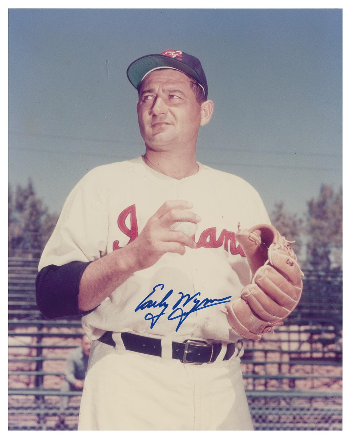 Color glossy 8 x 10 photo of Wynn in his Cleveland Indians uniform, signed in blue felt tip “Early Wynn.” In fine condition.
