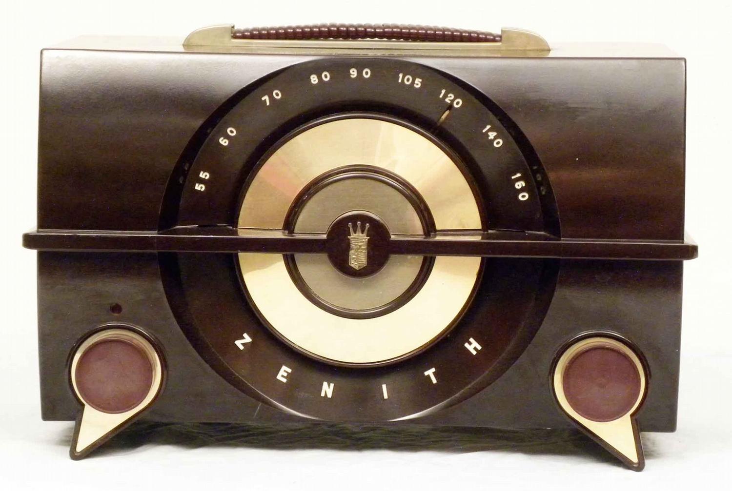 Early Zenith Plastic Radio Model # J615. Original paper label on bottom, original back and cord. 13 X 8 X 7 inches.