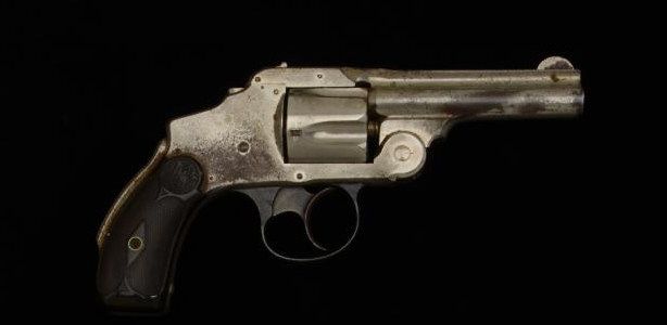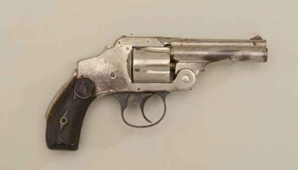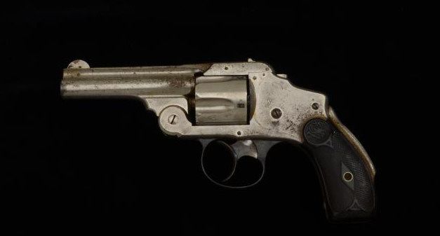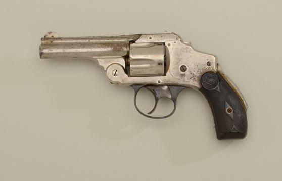 Early antique Smith & Wesson New Departure top break hammerless DA revolver, .38 cal., 3-1/4” barrel, nickel finish, checkered black hard rubber grips, #7426. This gun is in overall very good condition, uncleaned andshowing approx. 65% original frosty nickel finish, crisp action and markings, matching serial numbers, very good bore and grips. Est.: $175-$350.