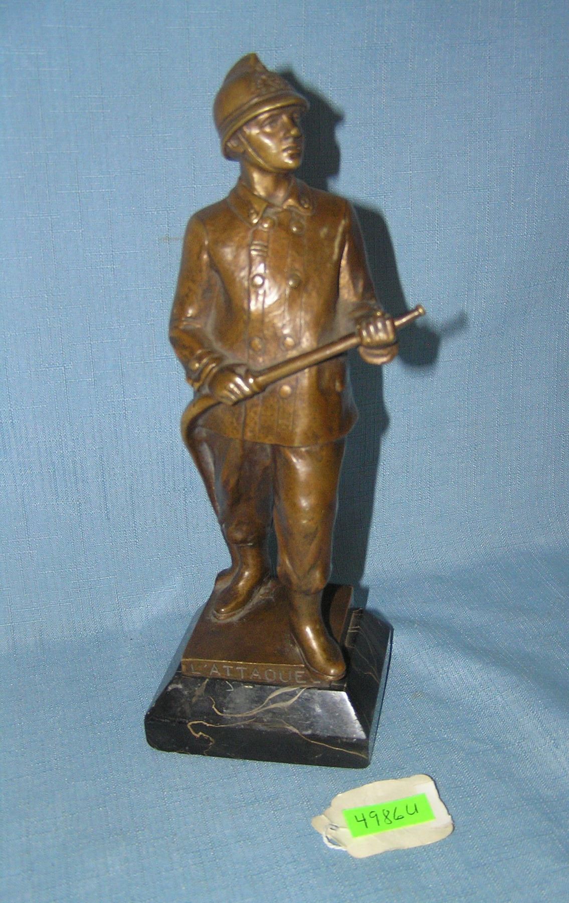 Early bronze fireman on a marble base signed T.H. Sommy and titled L'Attaque and signed on back mLes Artisans dubronze and Paris circa 1860s to 1880s est. value $7500.00-$8500.00