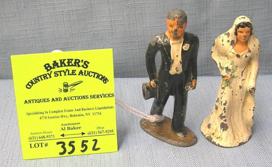 Early hand painted cast metal bride and groom figure set circa 1940?s extremely rare est. value $125.00-$150.00