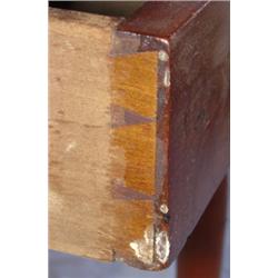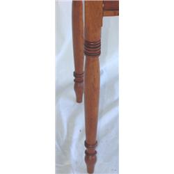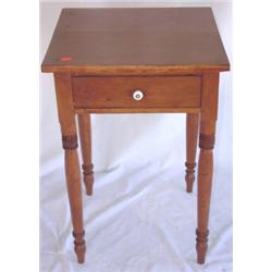 Early cherry one drawer stand with porcelain knob on dovetailed drawer. Measures 27 3/4" tall, top measures 18 3/4" square.