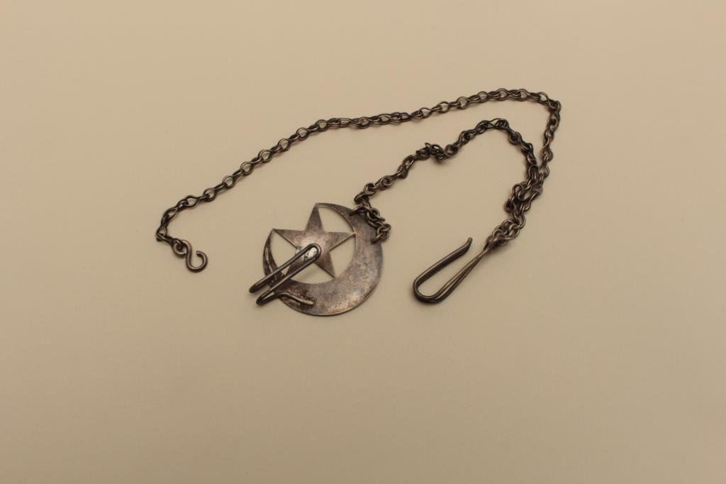 with clasps and chain; circa late 1800’s; jeweler’s hallmark on reverse. Est.: $500-$1,000 +