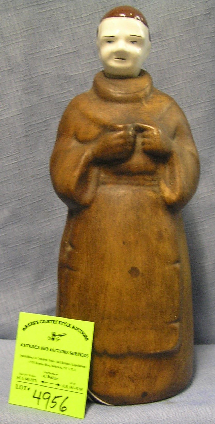 Early figural monk with beer mug beer or liquor decanter with removable head stopper $150.00-$200.00