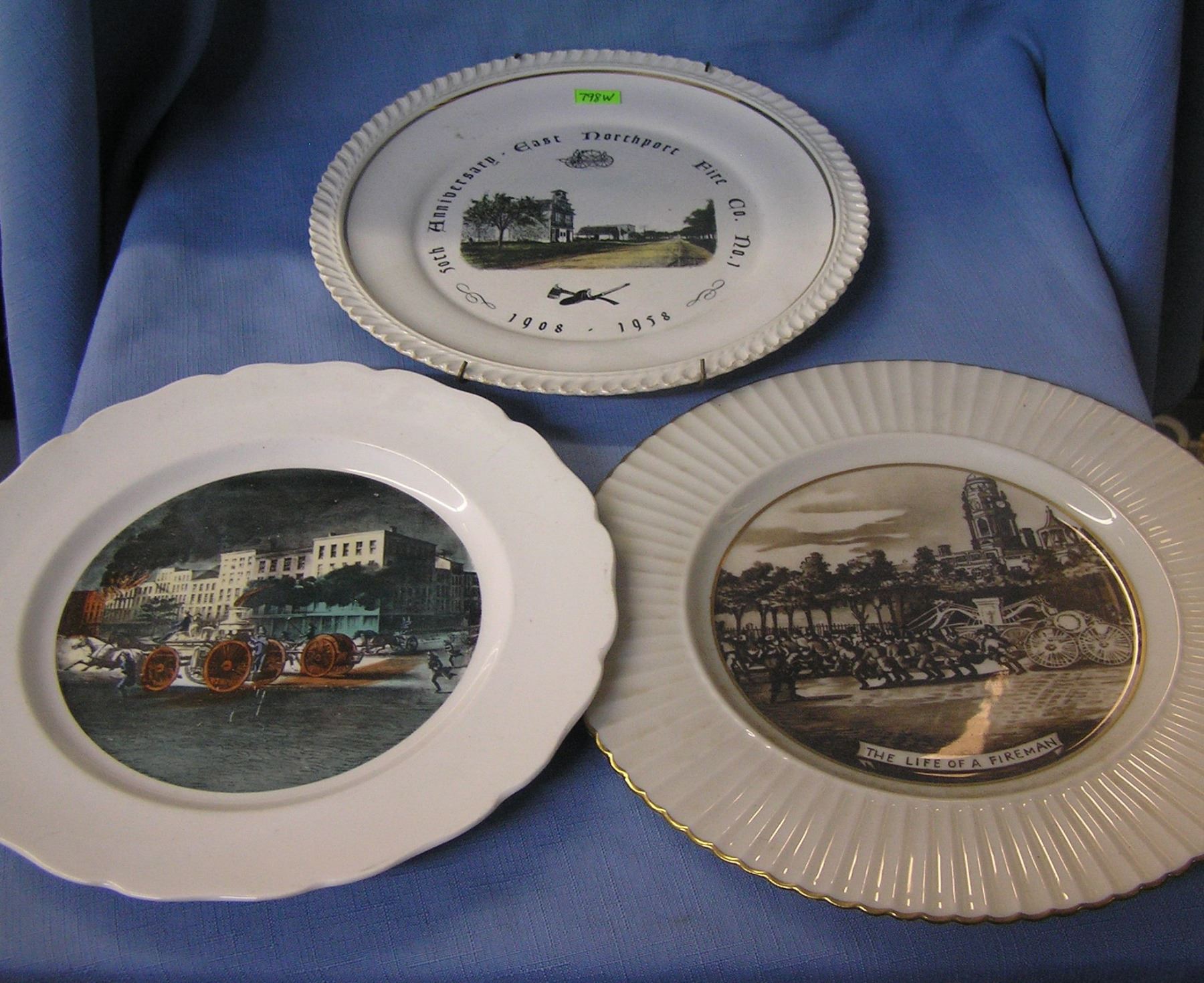 Group of three great early fire dept themed wall plates circa 1930’s-50’s $200.00-$250.00