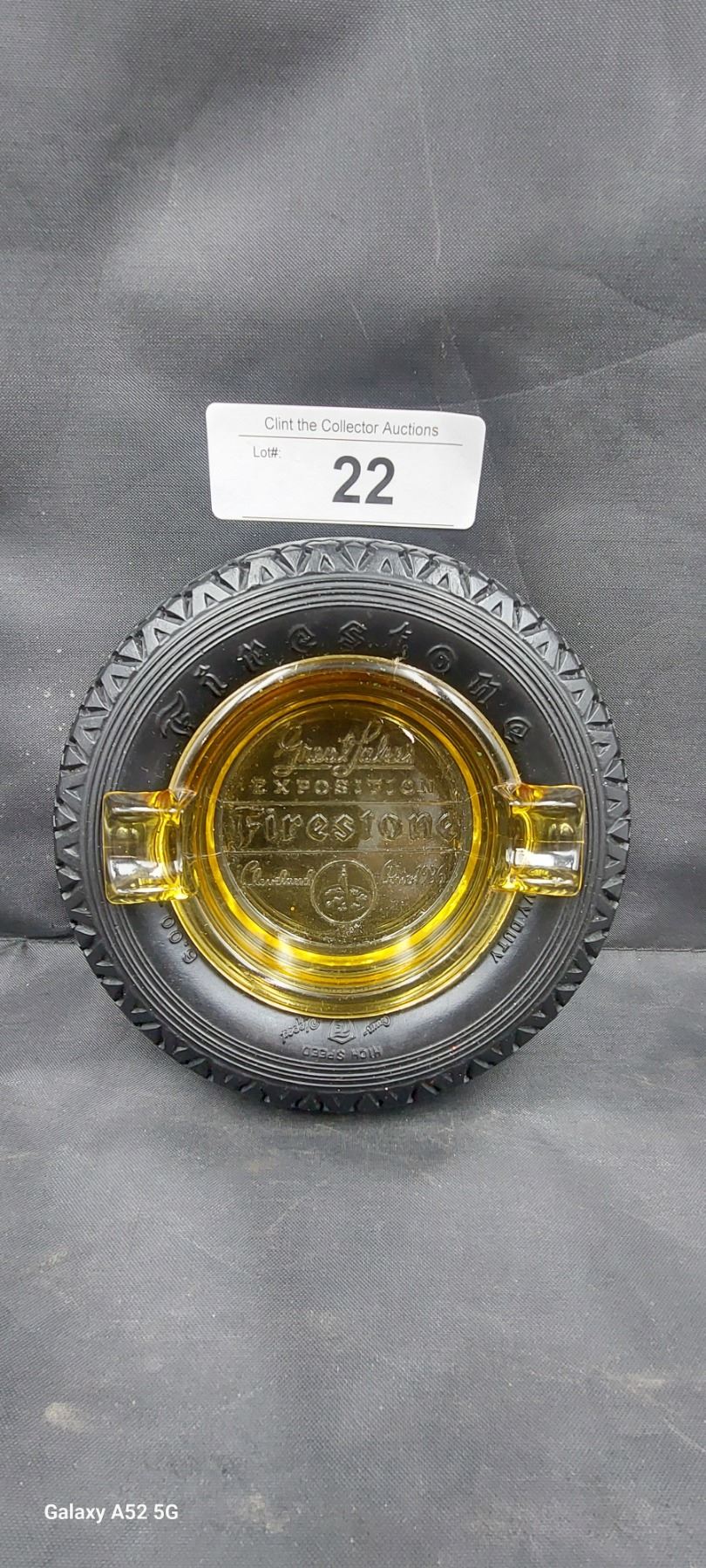Early firestone rubber tire ashtray embossed graphics