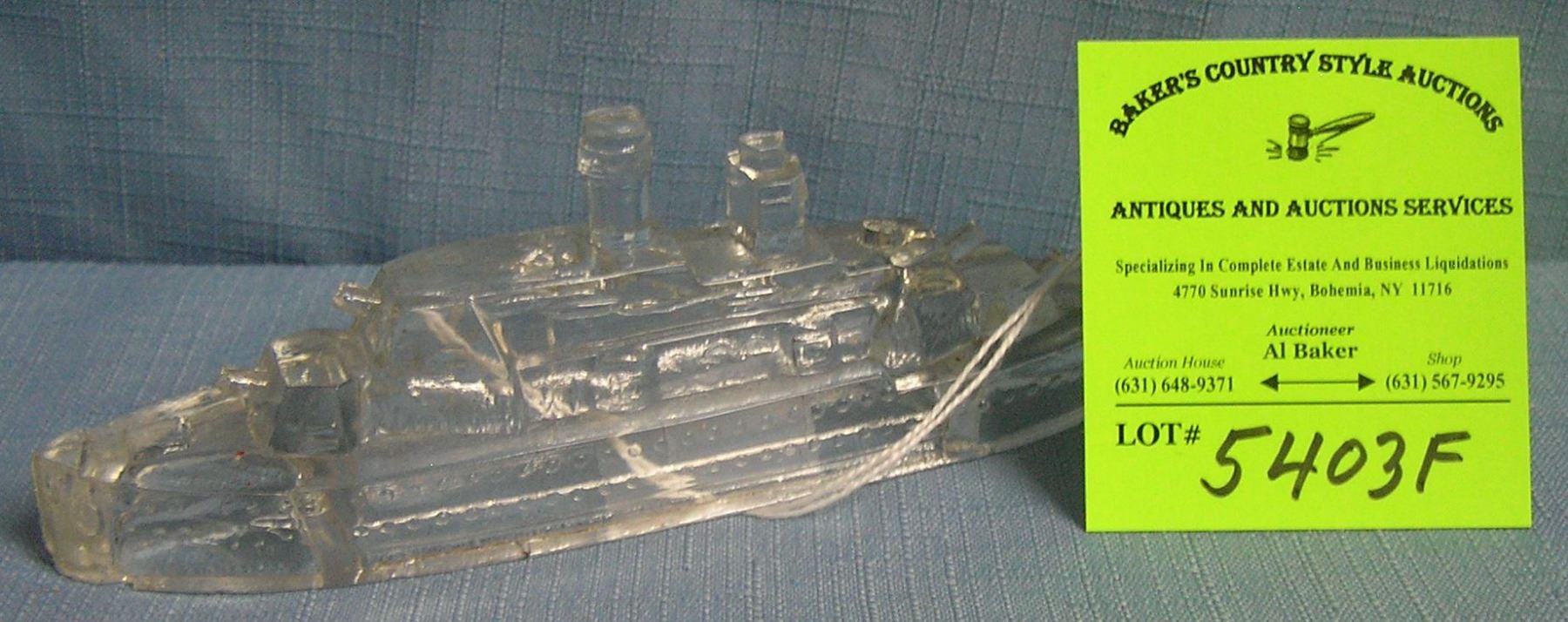 Early glass ocean liner candy container circa 1930’s est. value $65.00-$75.00