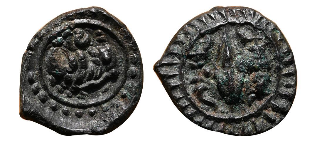 Early medieval Maharashtra, Khandesh region copper coin of 'Vishnukundin' fabric, attributed to a lo