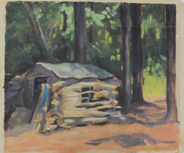 removed from stretcher bars, back stamped Snook Art Company Billing Montana, 16" X 14". Est. 150-300