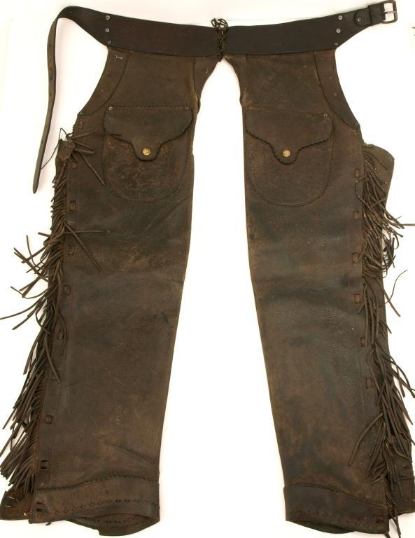 with basket stamp billet, fringe legs and outside pockets, George Lawrence marked buttons.