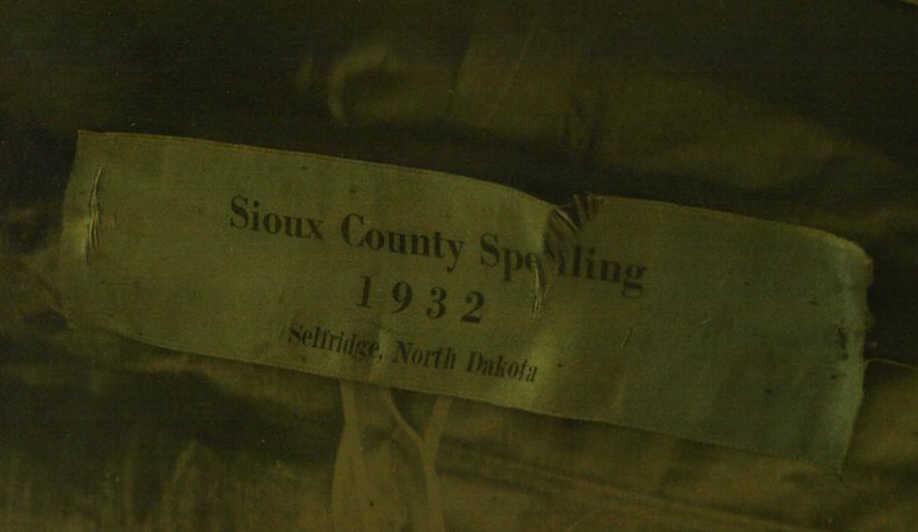 with various Catholic Sioux delegate ribbons. Measures 23" X 16".