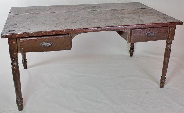 and right drawers, original cast iron pulls on turned legs, 29" X 35" X 60". Est. 400-800