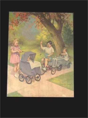 Early print in frame entitled (The Right O Way) by Adelaide Heibel, 16 1/2 inches x 20 1/2 inches, very good condition.