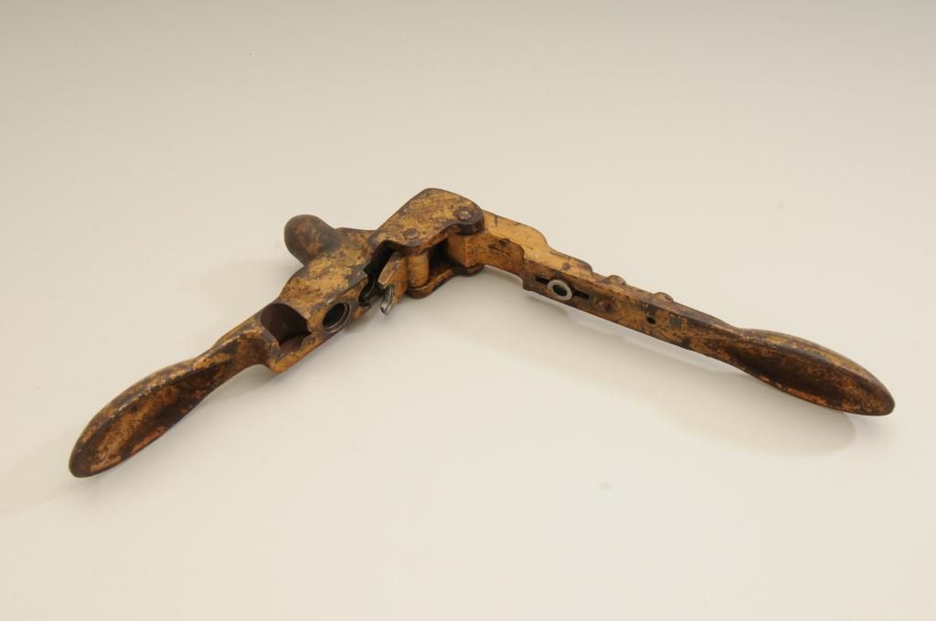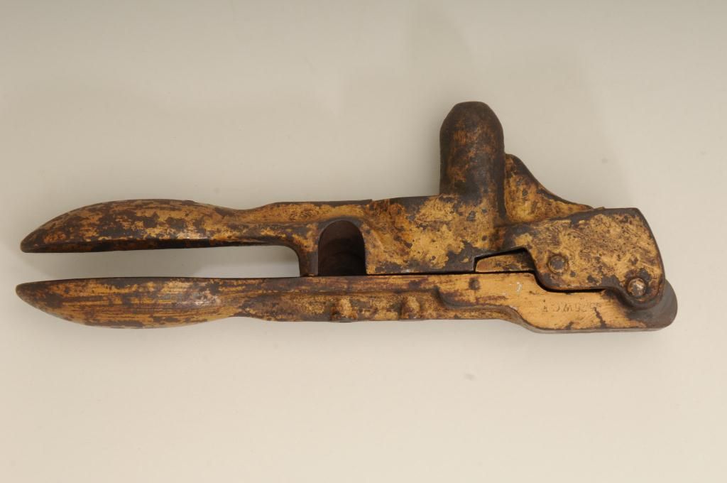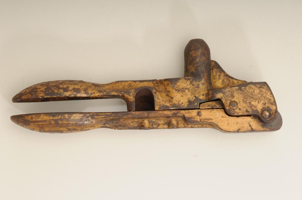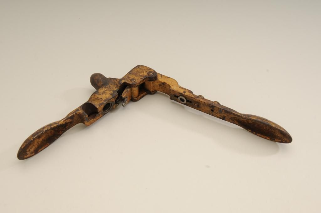Early spoon-type loading tool with considerable original gold paint for the .45-75 W.C.F. cartridge (Winchester Model 1876), uncleaned and in overall good condition; hard-to-find in any condition.Est.: $750-$1,500.