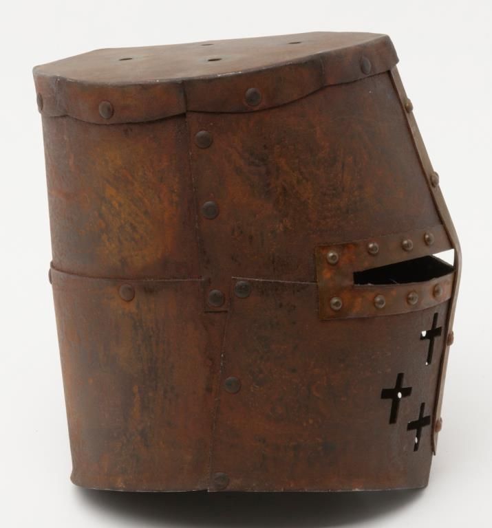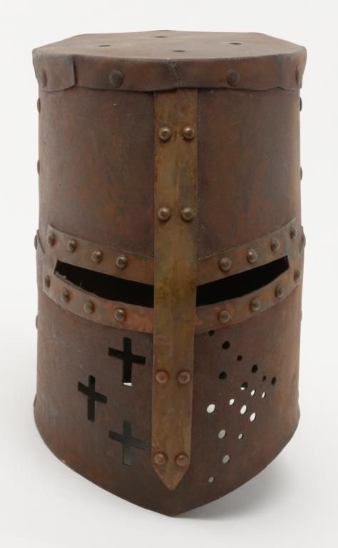 Early style European Helm. Made 19th to early 20th century with stand. Nice patina and aging. Est.: $600-$1,200.