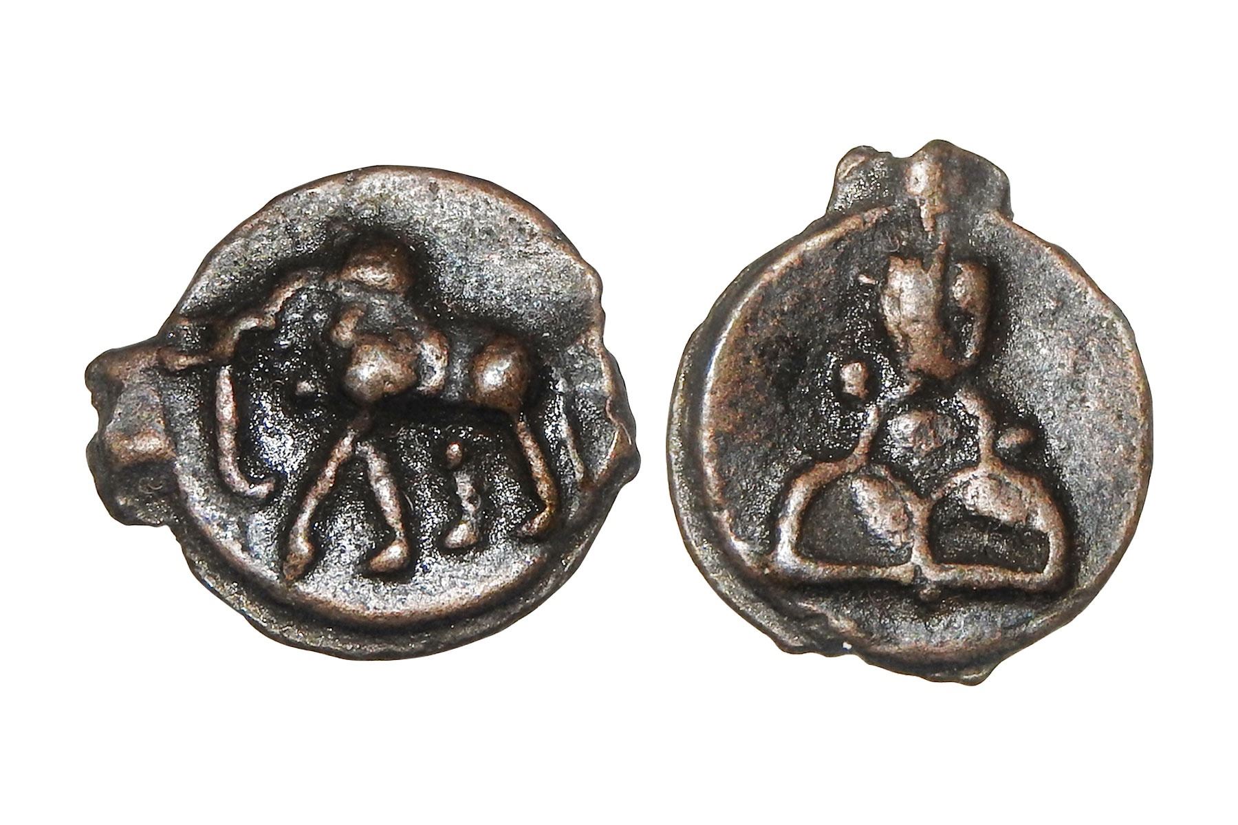 Early uninscribed cast Copper coin or EUCCC, (c.200-150 BC) – universal North Indian series, PAIC 323,