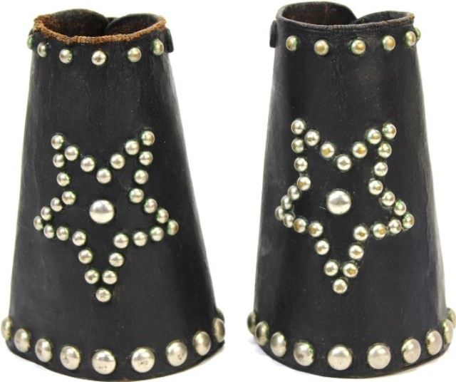 with 5 point star design, original straps and buckles intact. Nice early pair, 6 3/4" long.