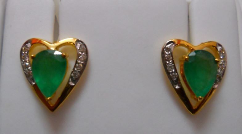 Earring of Diamond 0.11 Ctw, Emerald 1.744 Ctw in 3.19g 14kt Yellow Gold