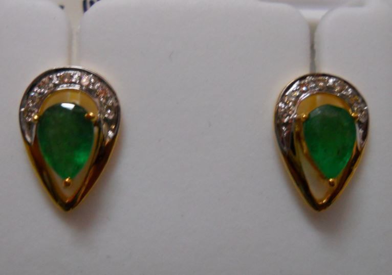 Earring of Diamond 0.12 Ctw, Emerald 1.24 Ctw in 3.03g 14kt Yellow Gold