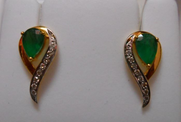 Earring of Diamond 0.13 Ctw, Emerald 1.16 Ctw in 2.97g 14kt Yellow Gold
