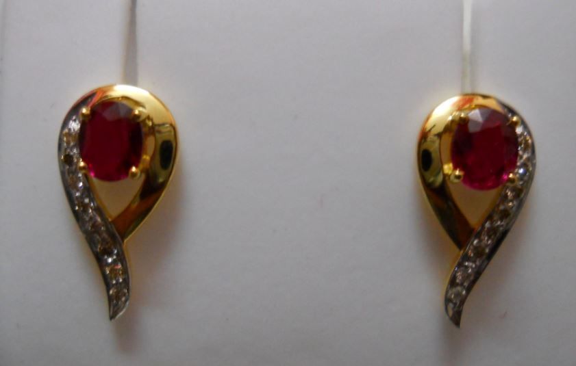 Earring of Diamond 0.15 Ctw,Ruby 1.05 Ctw in 2.96g 14kt Yellow Gold