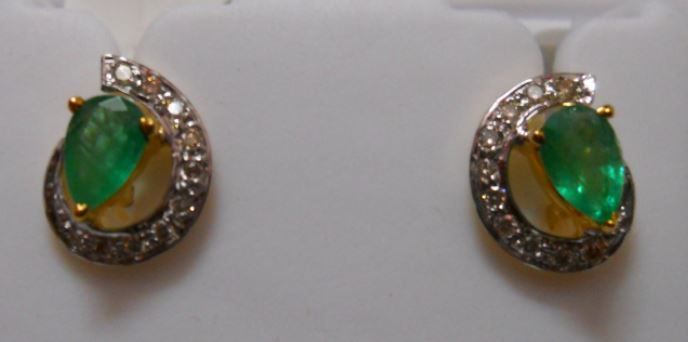 Earring of Diamond 0.16 Ctw, Emerald 0.83 Ctw in 2.40g 14kt Yellow Gold