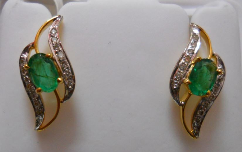 Earring of Diamond 0.19 Ctw,Emerald 0.86 Ctw in 3.01g 14kt Yellow Gold