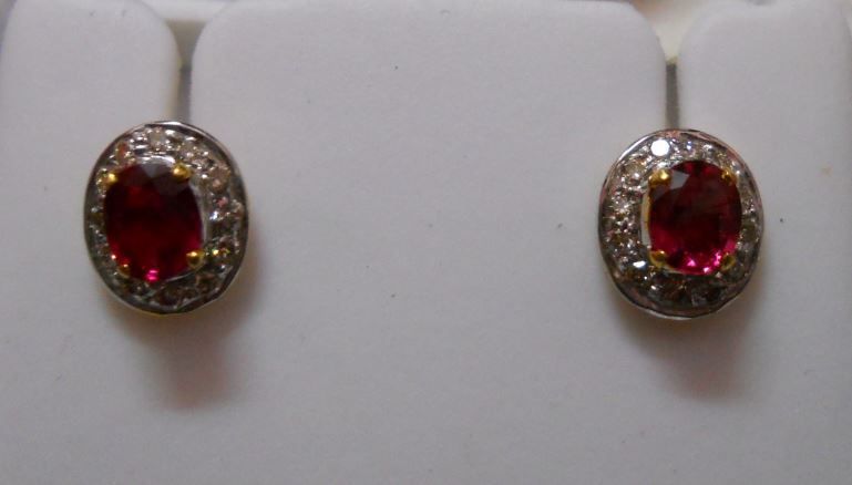 Earring of Diamond 0.25 Ctw, Ruby 0.82 Ctw in 3.20g 18kt Yellow Gold