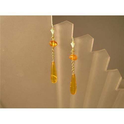 These are a pair of fun earrings!They are made out of 18ct. and Amber. They are light and therefore very comfortable to wear! They are 2ins - 5.5cm long.They weigh 2.8grms. They are made by an English family firm so they are not mass produced. They are perfect! They have the glorious golden colour of a necklace and ring which I am also offering on ebay. They all match very well together. I am sure these earrings would be fun to wear!!