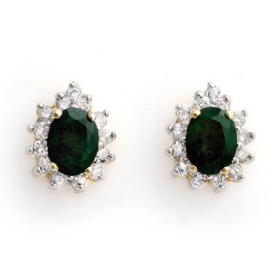 Genuine 3.85 ctw Emerald & Diamond Ladies Fancy Earring in 14K Yellow Gold Gemstone: 2 Oval Cut Emerald 3.10 ctw Diamonds: 26 Round Cut .75 ctw Clarity: SI3-I2 Color: H-K Gold Weight: Approximately 5.0 grams Dimensions: Approximately 1 Item #: 2549C4EMEE-Y Retail Value: $4,980.00