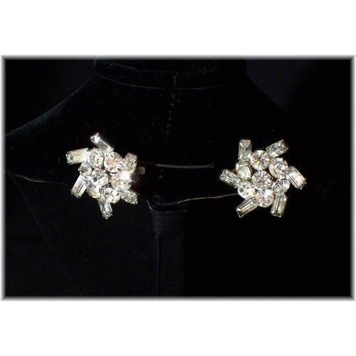 These earrings are beautiful star bursts shapes of baguette and round cut, clear rhinestones. They are in wonderful vintage condition with clear and bright stones and signed Weiss. I actually got these as a demi parure with the Kramer brooch I also have listed. I did not realize they were of different designers until I went to photograph them. They are beautiful and sparkly.