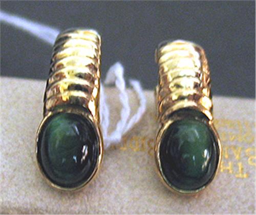 Earrings cats eye tourmaline set in 14kt yellow gold 7.9gr clip backs