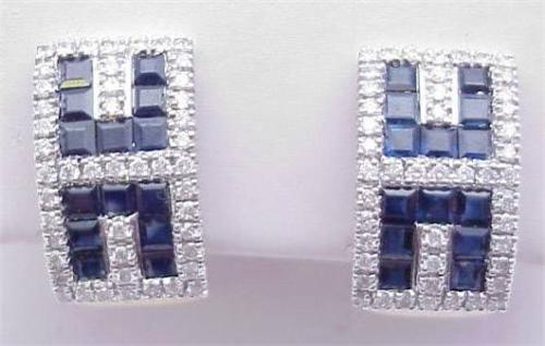 Earrings sapphire 5.50Ctw and diamond 1.50ctw omega backs 14kt yellow gold
