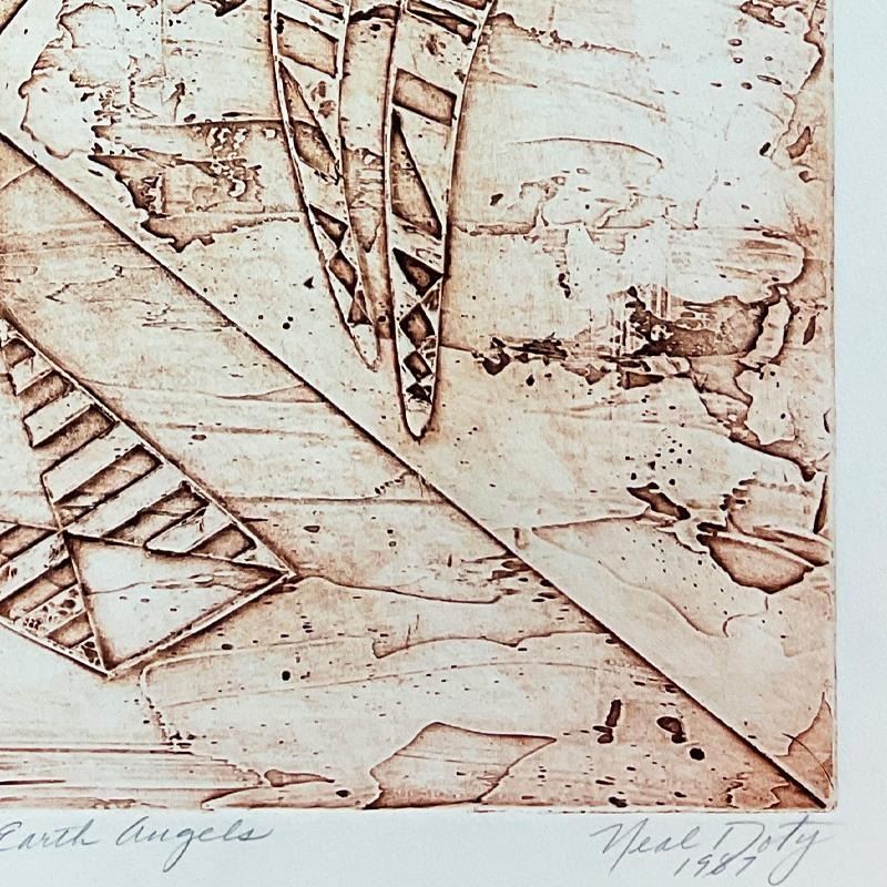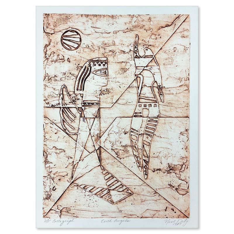 "Earth Angels" is a limited edition collograph on paper from an AP edition by Neal Doty (1941-2016), dated 1987, hand signed by the artist. Includes Letter of Authenticity. Measures approx. 20" x 26" (border), 15.5" x 21.5" (image).