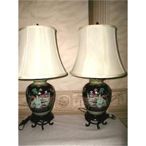 <tr><td>Title:Earthenware Teak Lamps Hand Painted C.1920</td></tr>
