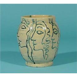 Earthenware pot, Abstract heads in green, maker's mark Ruman, numbered 883/14, h. 13 cm. …