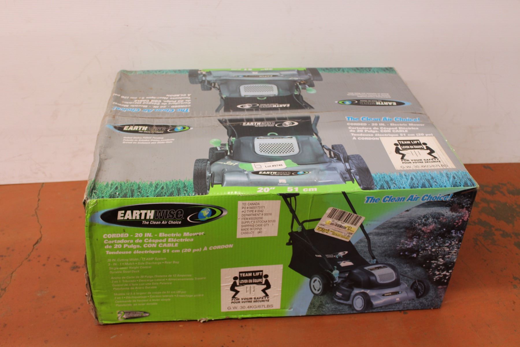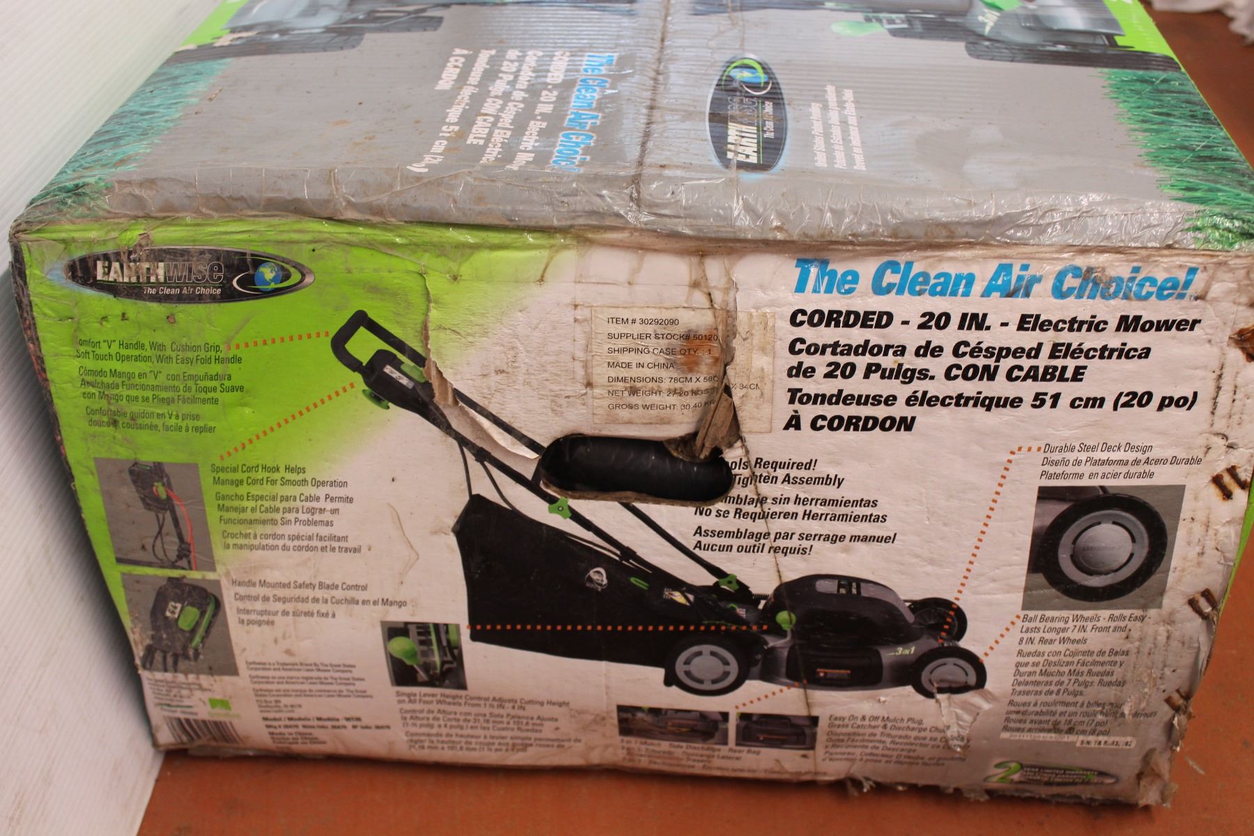 *Earthwise corded electric lawn mower sealed in box