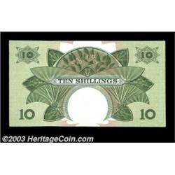 <TABLE cellSpacing=0 cellPadding=0 width="100%" bgColor=#000000 border=0><TBODY> <TR><TD width="100%"><TABLE cellSpacing=1 cellPadding=3 width="100%" border=0><TBODY><TR><TD width="100%" bgColor=#79735c><FONT face=arial color=#ffffff size=3><B>Description</B> </FONT></TD></TR><TR><TD width="100%" bgColor=#ffffff><FONT face=arial size=2><B>East African Currency Board.</B></I><BR>This lovely green tinted 10s (1958) Pick 38 note grades Choice-Gem CU. </FONT></TD></TR></TBODY></TABLE></TD></TR></TBODY></TABLE><BR><A name=PricesRealized></A><TABLE cellSpacing=0 cellPadding=0 width="100%" bgColor=#000000 border=0><TBODY><TR><TD width="100%"><TABLE cellSpacing=1 cellPadding=3 width="100%" border=0><TBODY><TR><TD width="100%" bgColor=#79735c><A name=PR><FONT face=arial color=#ffffff size=3><B>Previous Prices from Heritage Auctions</B> </FONT></A></TD></TR><TR><TD bgColor=#f6f6ed>No Prior Data Recorded </TD></TR><TR><TD bgColor=#ffffff><FONT face=arial size=1 ?>PLEASE NOTE: All prices realized reflect the final hammer price PLUS the buyer's premium in auctions that charge a buyer's premium. Each item has a notation at the top of the listing indicating whether that lot included a buyer's premium. Example: A item that sells with a final hammer price of $100 and a 20% buyer's premium will display with a price realized of $120. All information listed is intended to be as accurate as possible, but errors are possible. Please use this guide carefully and inform us of any inaccuracies. </FONT></TD></TR></TBODY></TABLE></TD></TR></TBODY></TABLE><BR><TABLE cellSpacing=0 cellPadding=0 width="100%" bgColor=#000000 border=0><TBODY><TR><TD width="100%"><TABLE cellSpacing=1 cellPadding=3 width="100%" border=0><TBODY><TR><TD width="100%" bgColor=#79735c colSpan=6><FONT face=arial color=#ffffff size=3><B>Price Guide*</B> </FONT></TD></TR><TR bgColor=#f6f6ed><TD align=middle><B>Grade</B> </TD><TD align=middle><B>Coin World<BR>(Trends)</B> </TD><TD align=middle><B>Numismedia<BR>Retail</B> </TD><TD align=middle><B>Numismedia<BR>Wholesale</B> </TD><TD align=middle><B>Coin<BR>Universe</B> </TD><TD align=middle><B>Heritage<BR>Value Index</B> </TD></TR><TR bgColor=#ffffff><TD colSpan=6><FONT size=1>*All information listed is intended to be as accurate as possible, but errors are possible. No item may be returned or refused based on this information which is provided as a service to our customers. You should contact each pricing source directly to determine the accuracy of this information. </FONT></TD></TR></TBODY></TABLE></TD></TR></TBODY></TABLE><BR><TABLE cellSpacing=0 cellPadding=0 width="100%" bgColor=#000000 border=0><TBODY><TR><TD width="100%"><TABLE cellSpacing=1 cellPadding=3 width="100%" border=0><TBODY><TR><TD width="100%" bgColor=#79735c><FONT face=arial color=#ffffff size=3><B>Population Guide</B> </FONT></TD></TR><TR bgColor=#ffffff> Important notice: Heritage usually auctions material at the rate of 200-250 lots per hour. On some occasions eBay Live bid software or the Internet may not be able to keep up with the pace of the auction. We recommend placing a realistic absentee bid now as insurance to avoid disappointment. Occasionally the auctioneer may eliminate or reject an eBay Live bid, and the auctioneer may also reopen a lot after the close of the eBay live bidding (usually because we missed an audience bid), and may reject your bid even if it shows you as the winning bidder. By bidding via eBay Live, you agree that Heritage may award the lot to another bidder at its sole discretion under the circumstances described above or any other reasonable circumstances. Also please note that all Heritage lots purchased through eBay Live carry a 20% Buyer's Premium. Please make sure you read the Terms and Conditions before you bid.</TD></TR></TBODY></TABLE></TD></TR></TBODY></TABLE>