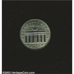 East Germany. 5 Mark 1983A, KM29. Berlin as Capitol. Rare issue with only 3000 minted. Flawless Gem BU. Important notice: We expect to be auctioning lots at the rate of 200-250 per hour. Sometimes eBay Premier live bid software cannot keep up with that pace, so we strongly recommend that you place a realistic proxy bid now as insurance to avoid disappointment. Also please note that all Heritage/CAA lots purchased through eBay Premier carry a 20% Buyer's Premium. Please make sure you read the Terms and Conditions.