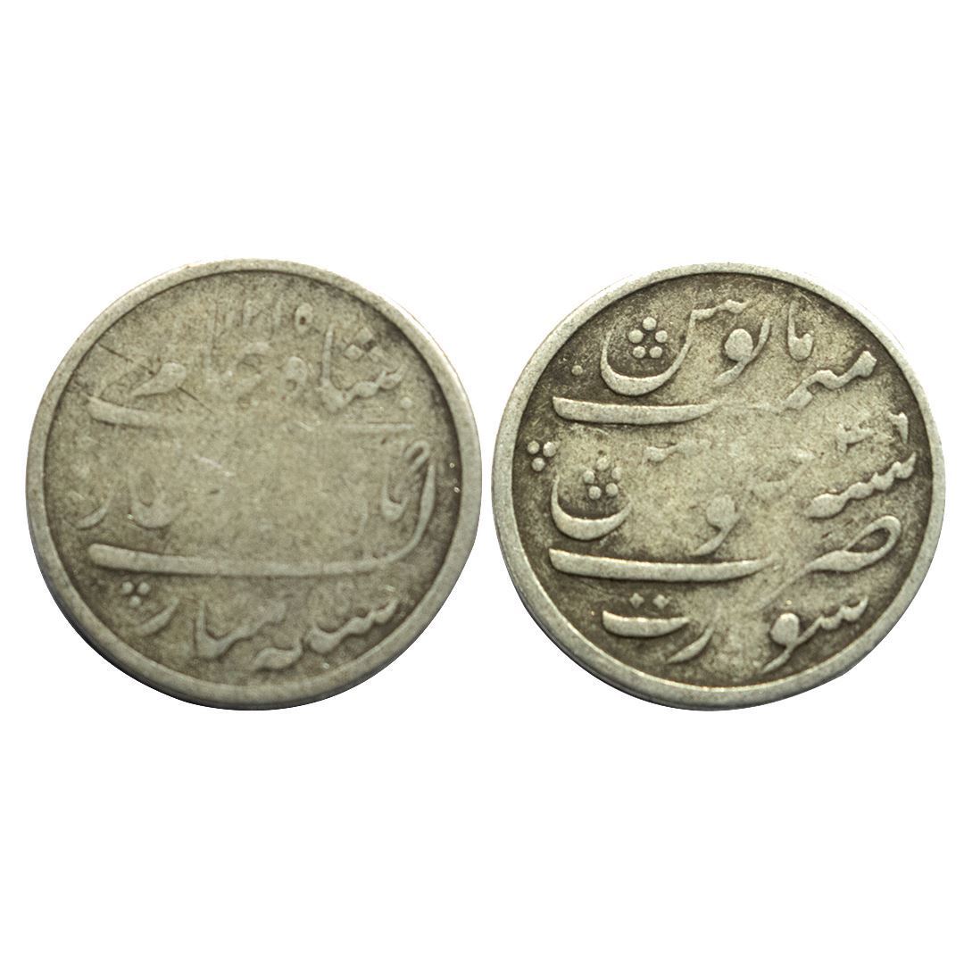 East India Company, Bombay Presidency, Silver ¼ Rupee, 2.73Grms, Surat Mint, AH 1215, RY 46, in the name of Shah Alam II. (KM # 222).